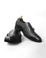 Explore Men’s Burgundy, Black Purple, Brown anf black color Double Monk Woven Leather Shoes at Leather Edges. Handwoven genuine leather with a goat lining and durable buffalo sole. Perfect for style and comfort.