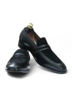 Shop Men’s Crafted Hand-Stitched Suede & Leather Black Two-Tone Loafer Shoes at Leather Edges. A fusion of luxury suede and leather, these handcrafted loafers offer unmatched style, comfort, and sophistication.”