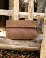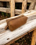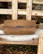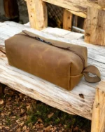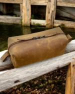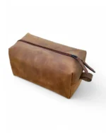 Durable leather toiletry bag for men, designed for travel & organization. Water-resistant lining, multiple compartments & stylish design.