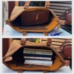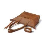 A handcrafted full-grain leather laptop tote bag with smart storage, padded laptop sleeve, and versatile carry options—perfect for work, travel, or gifting!